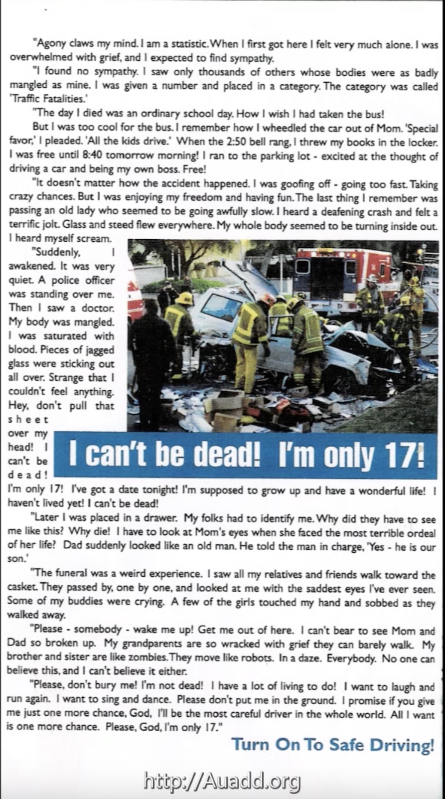 Taken from the original free drivers education program, in it’s paper form, given to high schools around the U.S.